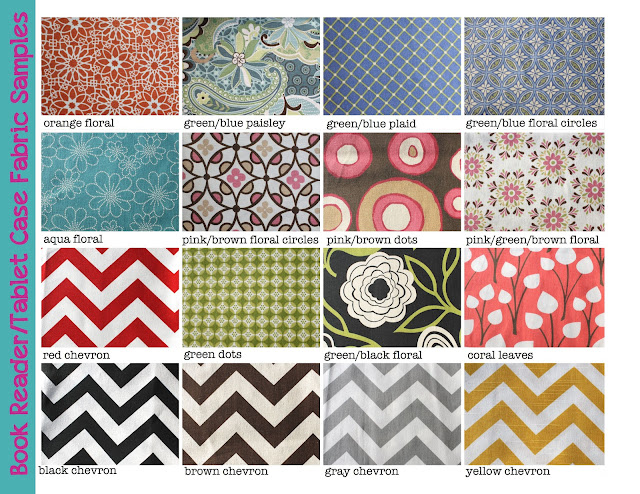 Many of these items are already listed in the shop and there are a LOT more to come in the next few weeks. We've also updated our fabric samples for Book Reader & iPad cases, and you can choose from these same fabrics for a custom Grab & Go Camera Bag or strap!