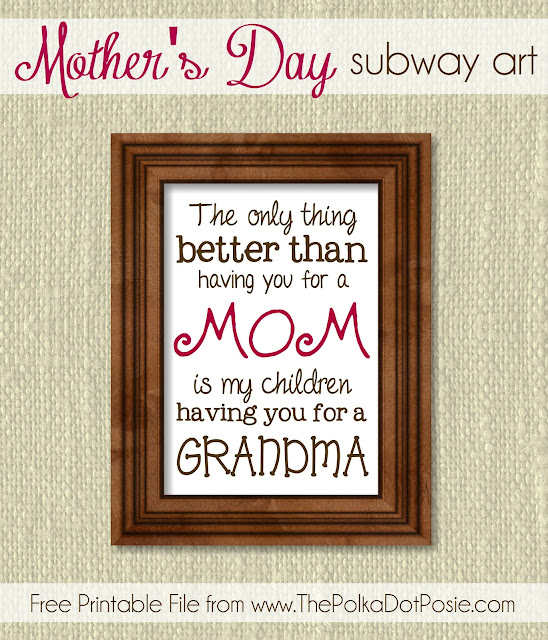 First, we have this darling mother's day subway art that can be printed at home and framed for the special mother or grandmother in your life :-)