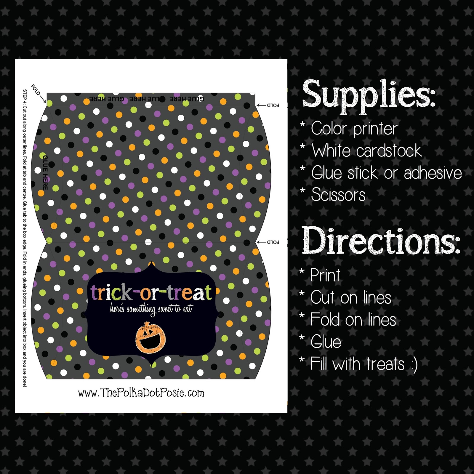 Printing and assembling is easy! Your PDF download will already be formatted for two treat boxes per 8.5 x 11 sheet so all you have to do is print, cut, glue and stuff with your favorite treats!!