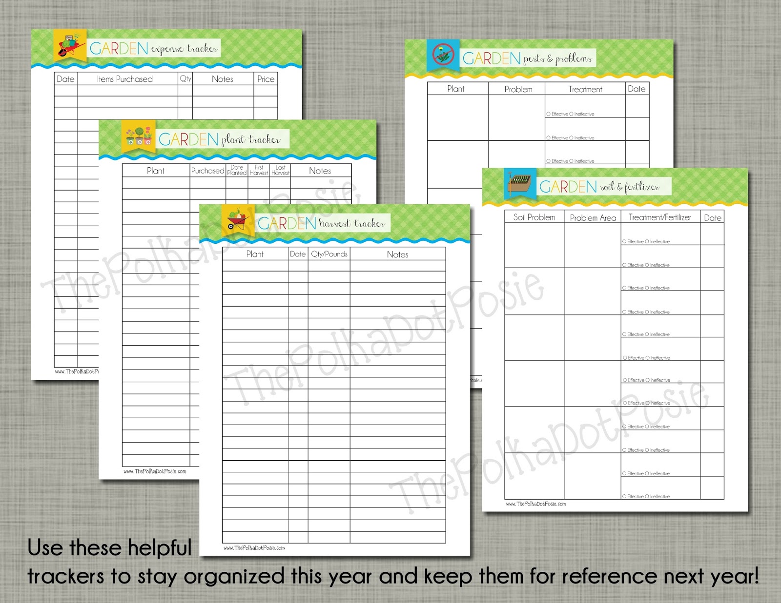 Each of the additional printables in the set offer various solutions for tracking your budget, seed growth and transplant, plant inventory, pests & problems and soil and fertilization.