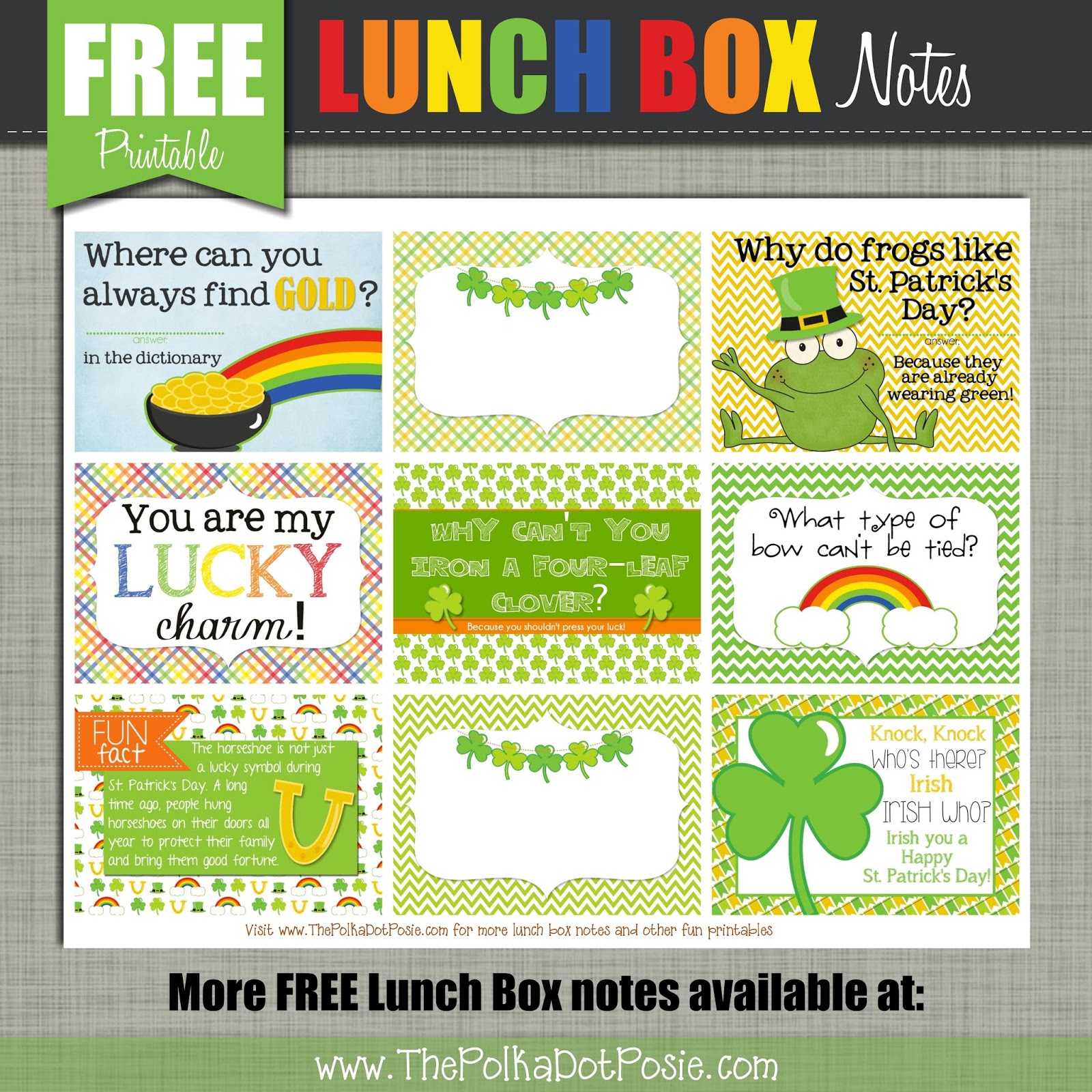 And while you are busy printing, check out these fun St. Patrick's Day lunch box notes and download them {HERE}!